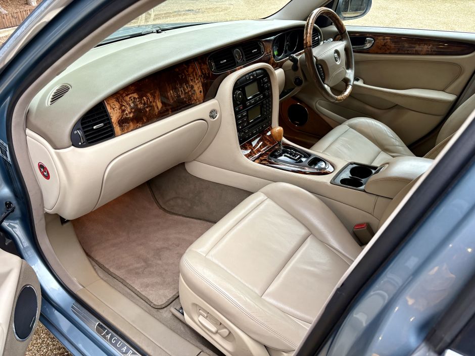 2005. Finished in Zircon Blue with cream interior. This XJ8 has had three keepers and has covered 99,000 miles from new which is all supported by a predominantly full Jaguar main dealer service history.