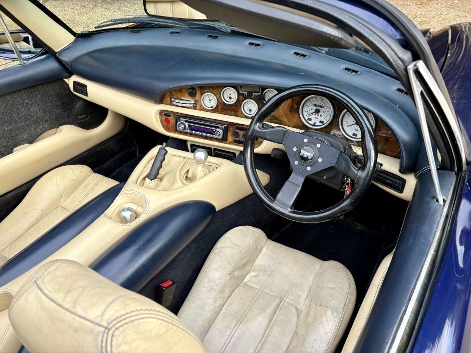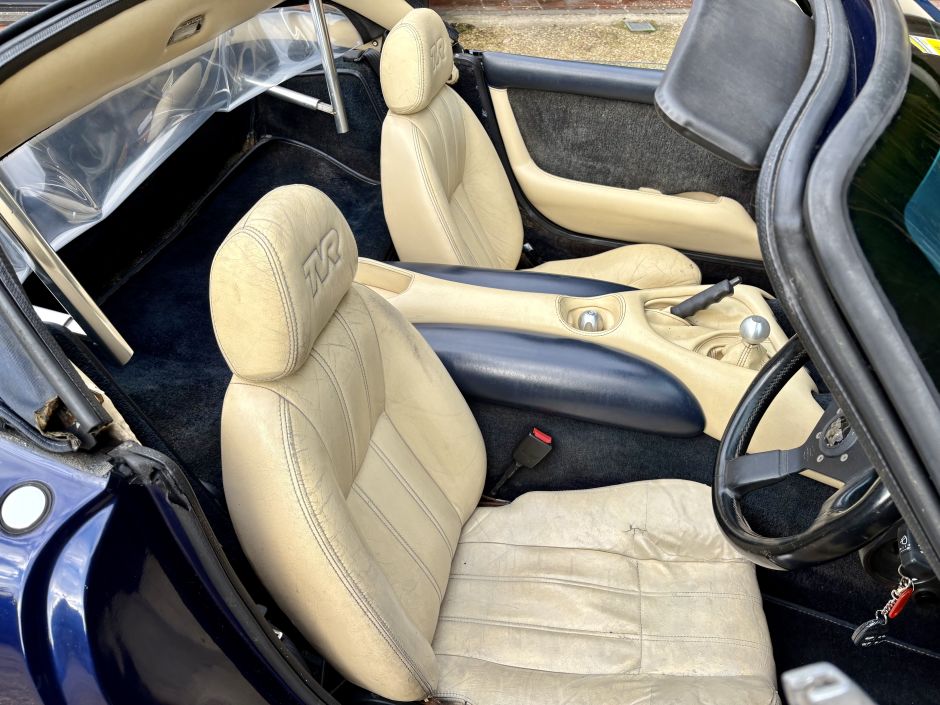 The TVR has been used sparingly in recent years and has been off the road since 2022. The car runs and drives but requires recommissioning both mechanically and cosmetically, therefore the car is strictly being sold as a project and must be trailered away.
